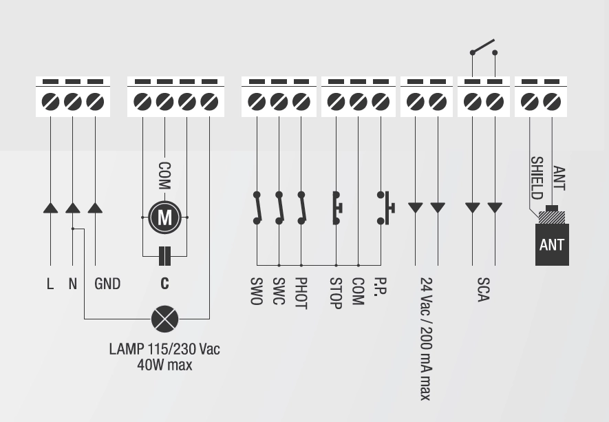 - Możliwość Rekonfiguracji Wejść: Wejścia STOP i P.P. mogą zostać przeprogramowane na dedykowane wejścia OTWIERAJ (OPEN) i ZAMYKAJ (CLOSE) dla bardziej spersonalizowanego sterowania. Dostosowanie sterowania do specyficznych wymagań instalacji.
