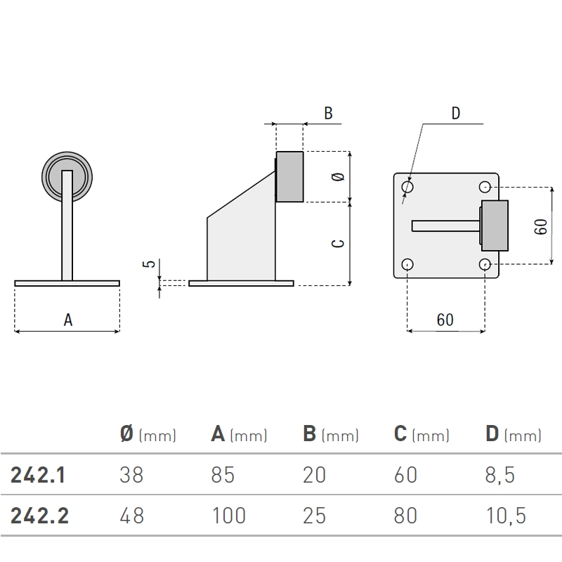 242.2: Ogranicznik z odbojnikiem Ø48 mm