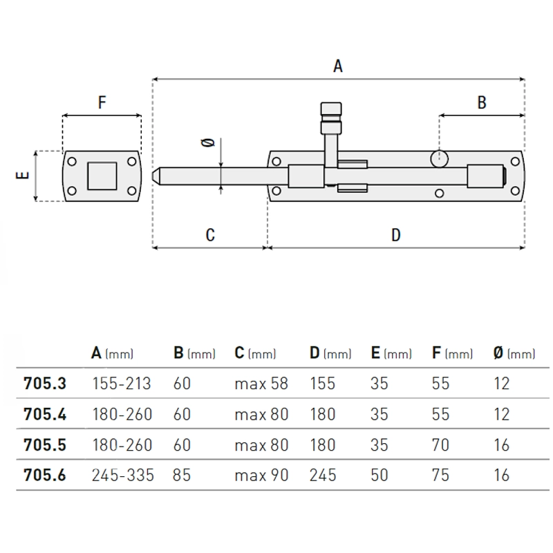 Szeroki Wybór Wariantów: Seria 705 oferuje cztery warianty, różniące się długością i grubością trzpienia. Z łatwością dobierzesz rygiel idealnie dopasowany do wysokości, wagi i wymagań bezpieczeństwa Twojej bramy, co zapewnia nie tylko skuteczne działanie, ale również estetyczny wygląd.