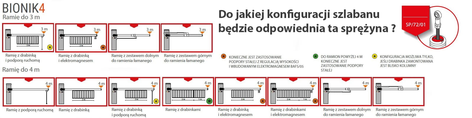 - Efektywna praca szlabanu – gwarantuje optymalną równowagę i działanie mechanizmu w zależności od długości ramienia i zastosowanych akcesoriów.