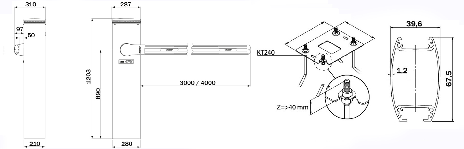 Kolumna szlabanu z centralą, enkoderem, oświetleniem LED kolumny,