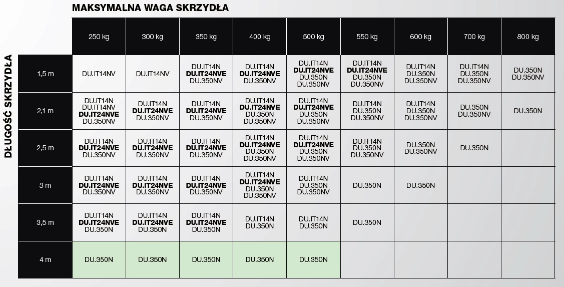 4. Tabela doboru automatyki Beninca - Siłowniki podziemne
