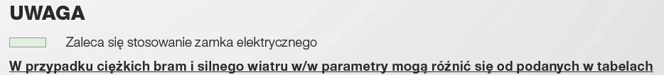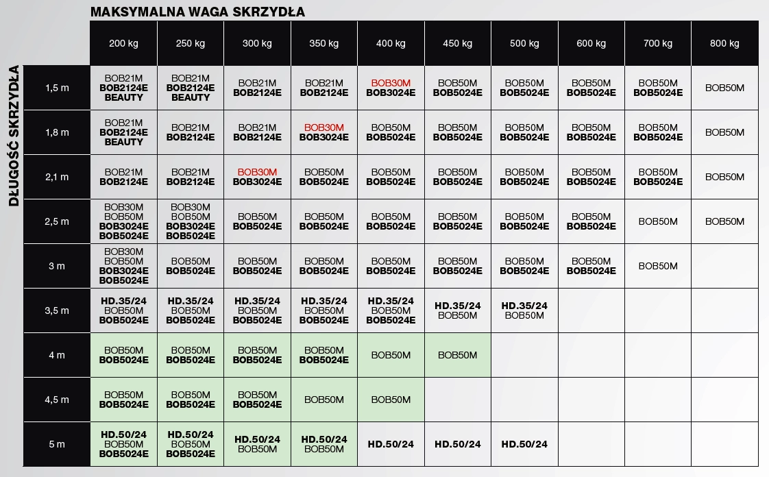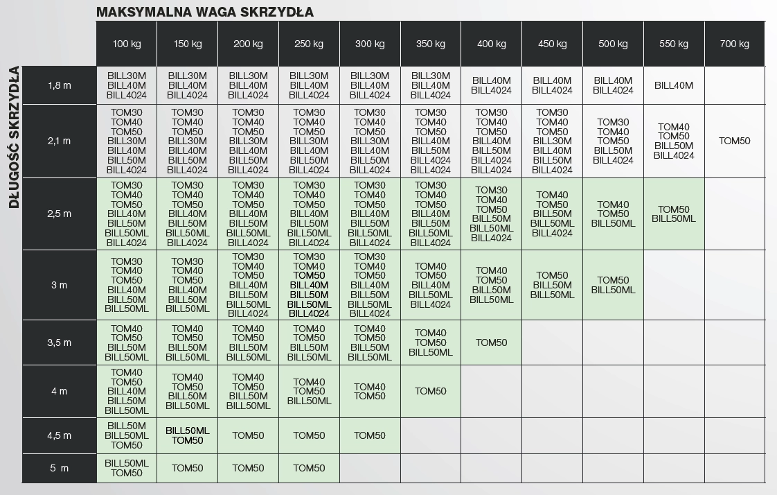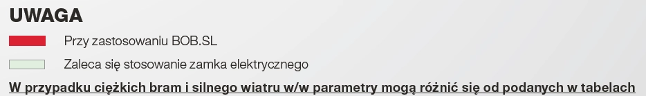 1. Tabela doboru automatyki Beninca - Siłowniki liniowe