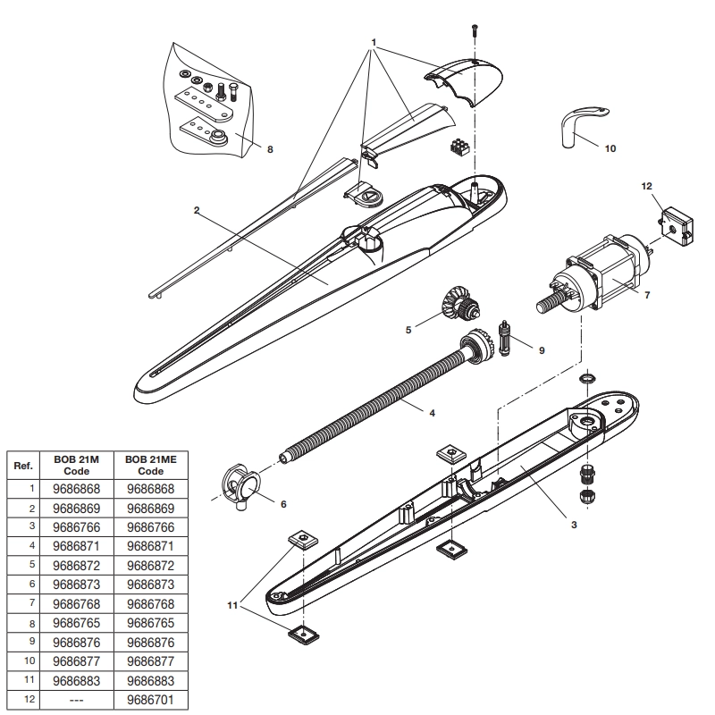 Część zamienna jest przeznaczona do siłowników do bram skrzydłowych z serii Beninca BOB21 / BOB2124 (np. BOB21M, BOB21ME, BOB2124, BOB2124E).