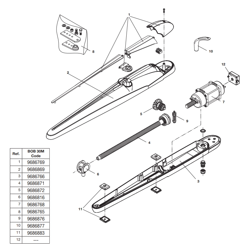 Część zamienna jest przeznaczona do siłowników do bram skrzydłowych z serii Beninca BOB30 (np. BOB30M, BOB30ME, BOB3024, BOB3024E).