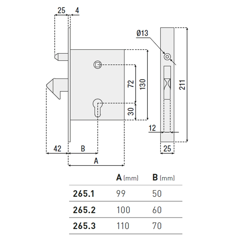 Zamek z serii 265 jest przeznaczony do montażu w bramach przesuwnych poprzez wspawanie w dedykowaną kasetę lub bezpośrednio w profil bramy.