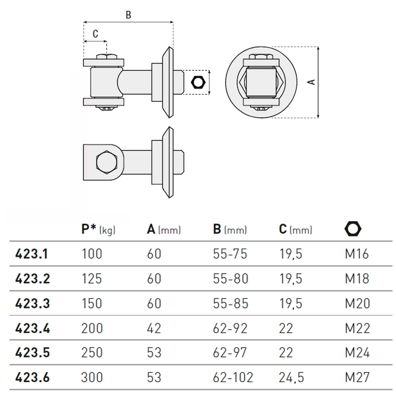 Zawias do przyspawania - seria 423 HI MOTIONS