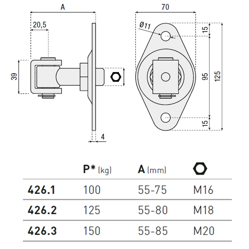 Szeroki Wybór Rozmiarów: Seria 426 oferuje trzy warianty, różniące się rozmiarem i nośnością. Z łatwością dobierzesz zawias idealnie dopasowany do wagi i konstrukcji Twojej bramy, zapewniając jej optymalne parametry pracy.