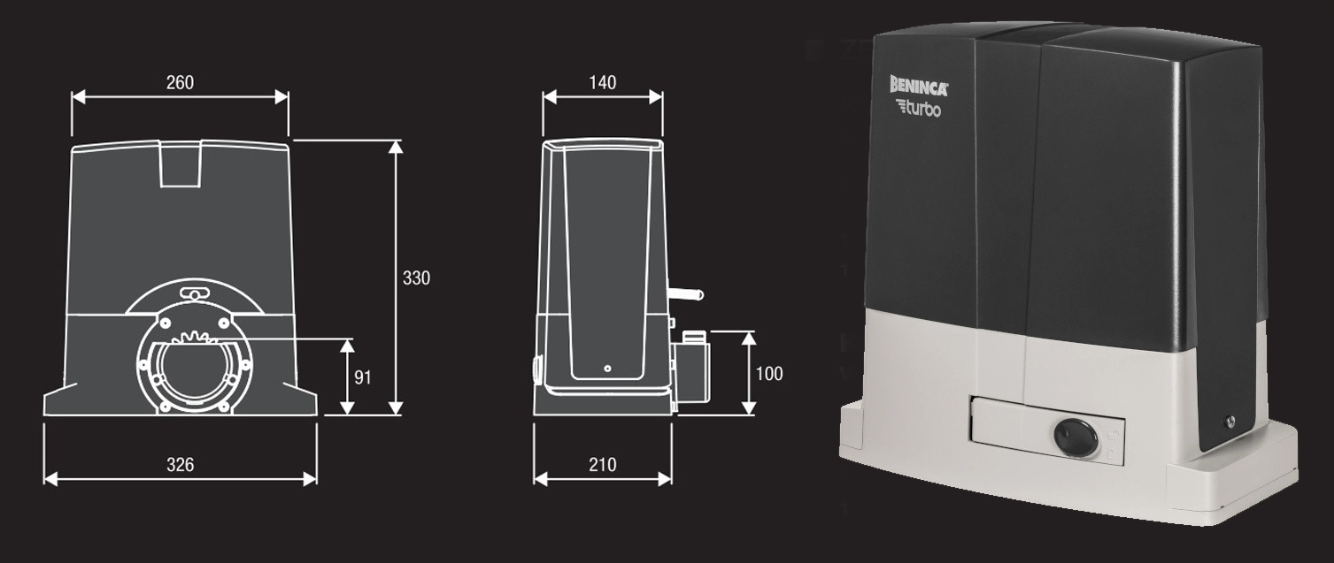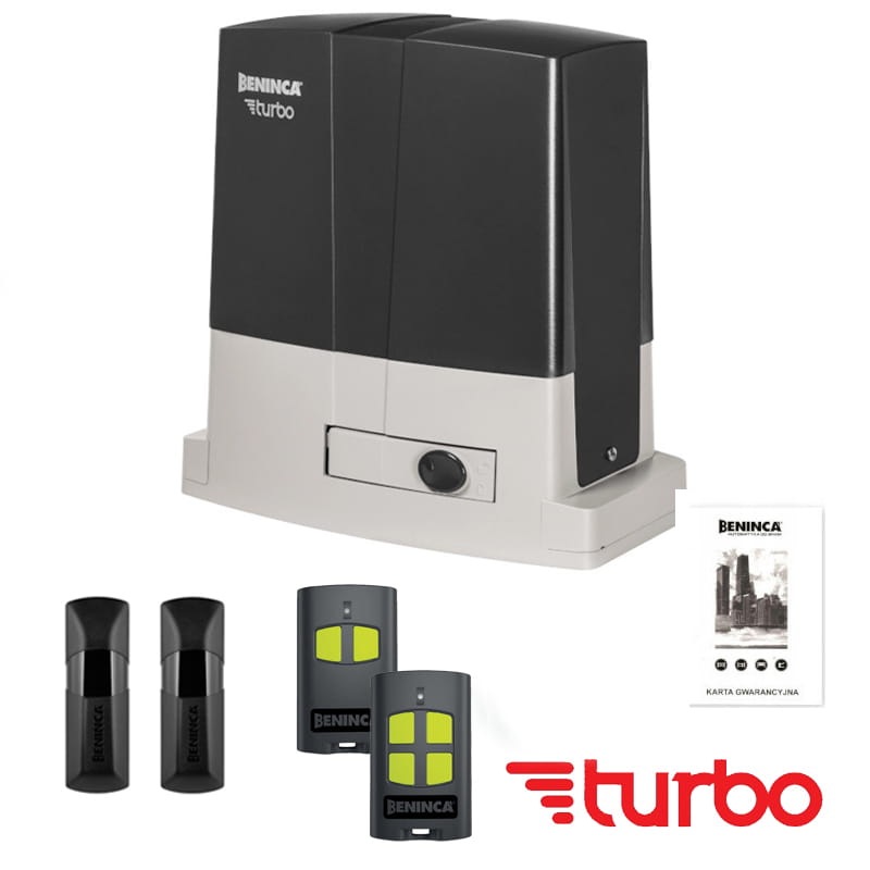 BENINCA BULL624.TURBO / Zestaw KBULL624 TURBO.S.PM: Błyskawicznie szybki i super bezpieczny napęd do bram przesuwnych do 600kg. Prędkość do 25m/min, enkoder, funkcja furtki, 24V. Zapewnia komfort, oszczędność czasu i bezawaryjną pracę. W zestawie komplet akcesoriów!