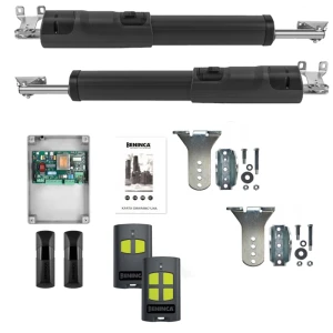 Odkryj niezrównaną kombinację siły, innowacyjności i włoskiego designu z kompletnym zestawem automatyki Beninca KTOM40M.P, wyposażonym w zaawansowane, teleskopowe siłowniki TOM40M 230Vac. Ten wszechstronny zestaw jest idealnym rozwiązaniem do automatyzacji szerokich bram skrzydłowych o długości skrzydła aż do 4 metrów, łącząc w sobie opatentowaną technologię przekładni, niezwykle solidną konstrukcję i elegancki wygląd. Zestaw KTOM40M.P zawiera wszystko, czego potrzebujesz do stworzenia niezawodnego, bezpiecznego i funkcjonalnego systemu automatycznego otwierania Twojej bramy, w tym nowoczesną centralę sterującą HEADY, fotokomórki i stylowe piloty.