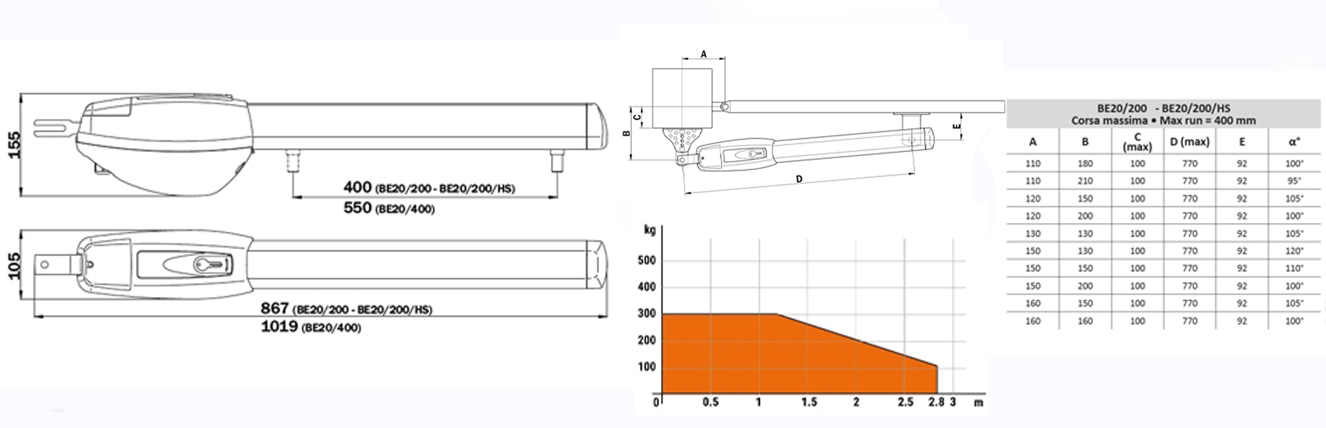 Zestaw do bramy skrzydłowej KIT BE20/410/F (do 4m ) ROGER