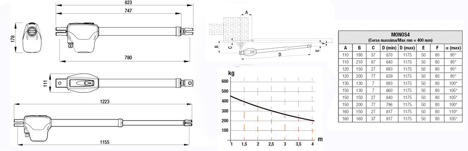 Zestaw do bramy skrzydłowej KIT MONOS4/220/F (do 4m ) ROGER