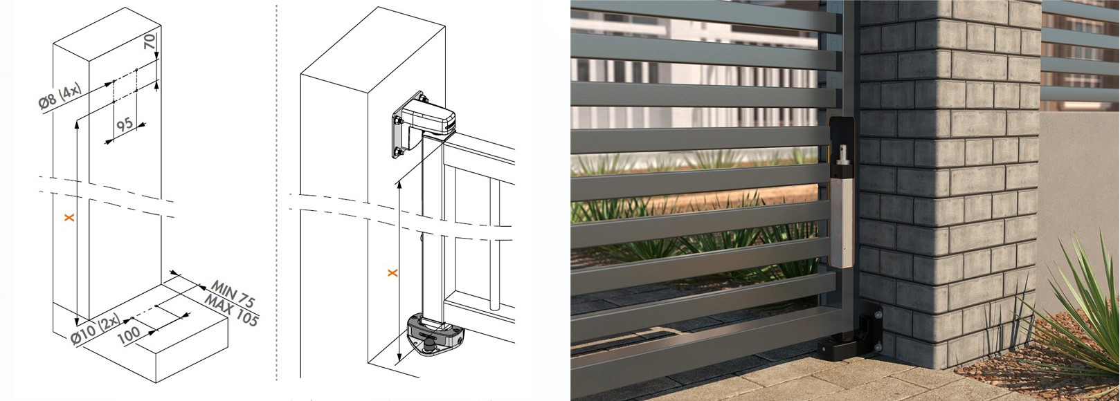- Odległość między bramą a ścianą: min. 29 mm