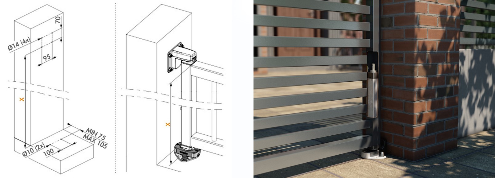 - Odległość między bramą a ścianą: min. 29 mm - maks. 54 mm