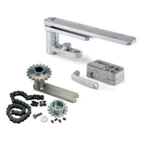 Beninca SB.180.L: Specjalistyczny zestaw odblokowania z dźwignią i przekładnią łańcuchową do siłowników podziemnych Beninca DU.350. Umożliwia otwarcie bramy aż do 180 stopni, zapewniając maksymalną przestrzeń i proste, szybkie odblokowanie awaryjne.